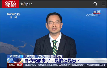 2024年7月10日,北京交通大学法学院副院长郑飞受邀直播连线《新闻1+1》栏目,与主持人白岩松就《自动驾驶来了,是怕还是盼?》这个主题进行了深入探讨。
