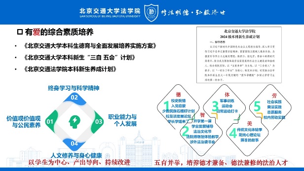 学院结合实际,以“五育并举”为主线,以“三全育人”为抓手,以“一切为了学生”为核心,制定《法学院2024级本科新生养成计划》。
