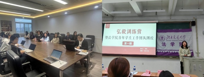 为提升学院本研学生骨干的理论水平、实操技能、综合能力,法学院启动学生骨干“知行者计划”,组织开展系列培训活动。10月21日晚,法学院在思源西楼201教室召开2024-2025学年青年学生工作团队干理大会暨学生骨干“知行者计划”之弘毅训练营第一讲。学生工作组、青年学生工作团队全体成员参加。