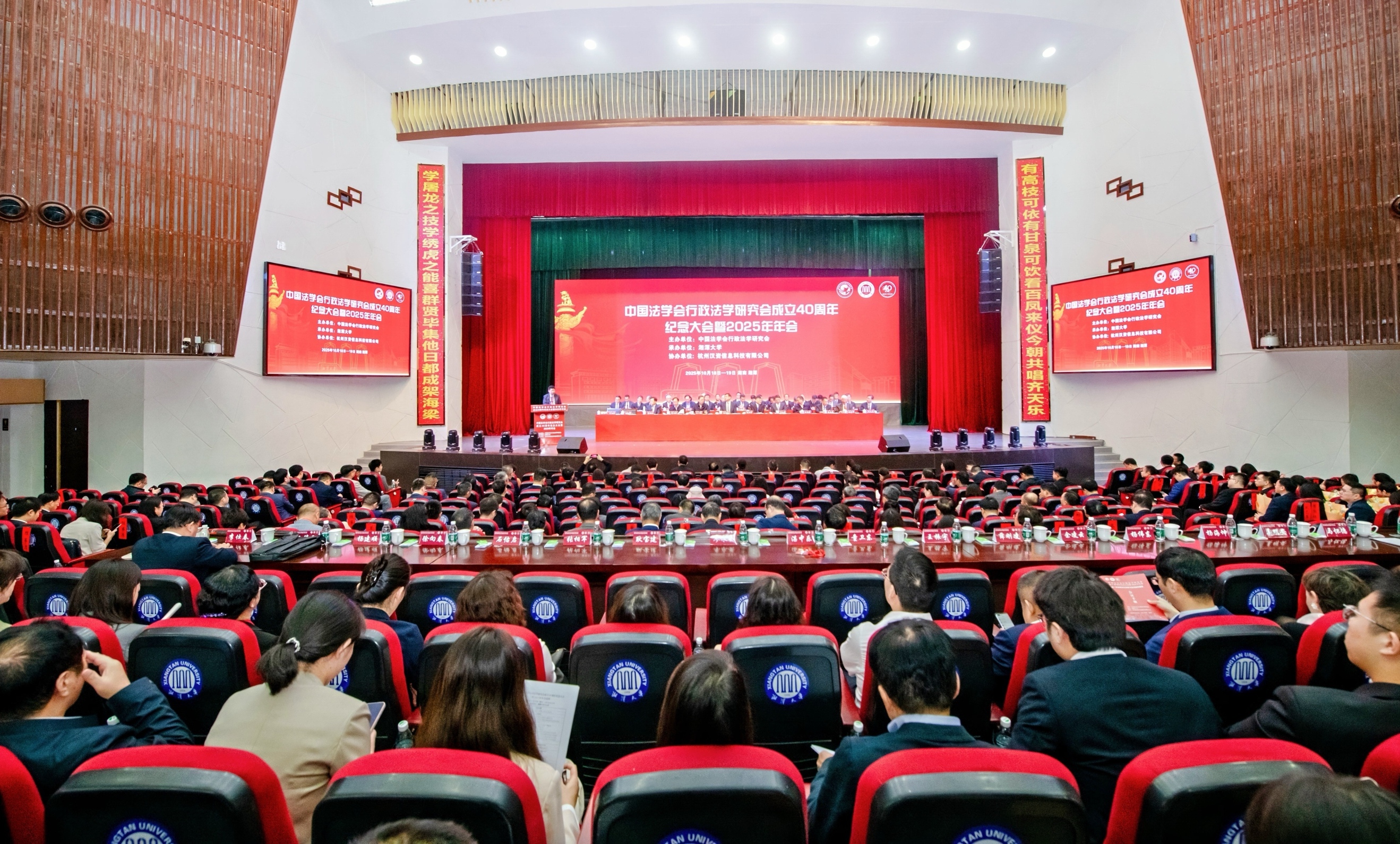 本次年会以“进一步全面深化改革与法治政府建设”为主题,由中国法学会行政法学研究会主办、湘潭大学承办。来自最高人民法院、最高人民检察院、全国人大常委会法工委、司法部等国家机关领导同志,北京大学、清华大学、中国人民大学、中共中央党校(国家行政学院)、中国社会科学院、中国政法大学、中南财经政法大学、西南政法大学、华东政法大学、西北政法大学等高校和科研机构的专家学者600多人及学生共800余人齐聚一堂,共襄盛举,回顾四十年辉煌历程,共绘新时代行政法治发展蓝图。